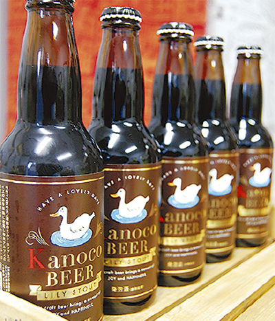同店をオープンしたのは地元在住の飛永かの子さん(46)。ご当地商品として「素敵な1日を!」をコンセプトに作ったリリィスタウトは、モルトのコクや香りに加え、スパイシーさとバニラのほのかな香りが含まれたオリジナルレシピのビールだ。昨年9月に飛永さんが茨城県の酒造メーカーに出向いて配合を考え、長野県で約1200本を生産した。「ラベルをデザイナーさんにお願いすることなども自分でやったので、一つの商品を世に出すことがこんなに大変なのかと思いました」。女性らしい手書きイラスト風の白鳥とLILY(ユリ)を商品名に付けたビールは昨年末にデザインもまとまり、酒販免許の取得などを経て今春の商品化にこぎつけた。