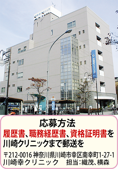 待遇、詳細についての問い合わせは同クリニック(【電話】044・544・1020)へ。