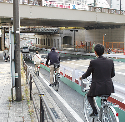 通勤時に設置場所を自転車で通るという女性は「設置前は人とすれ違うのが怖かった。今は安心して通れる」。川崎駅近郊を走るタクシー運転手の男性も「駅側に抜けるのにやや渋滞することもあるが、車道を走る自転車がいなくなった分、安心して運転できている」と話した。
