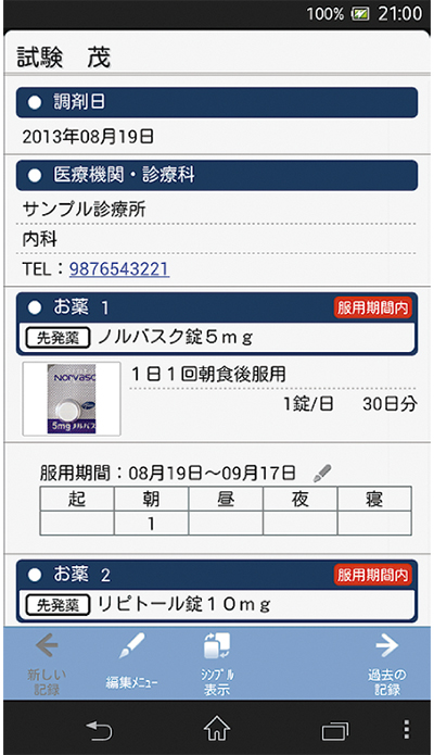 従来のおくすり手帳とは異なり、本人の了承を得れば、家族も登録できるので、家庭内の薬歴を一元化して管理することができるようになる。また、遠隔地においてもスマートフォンでデータを確認することができるため、遠方に住む家族や親族が、利用者の健康状況を把握・管理できるツールとしても期待されている。