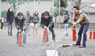 フォーラムが行われたカトリック貝塚教会はミサで外国人市民がたくさん集まり、コミュニティーが形成されている。こうしたコミュニティーで開催されるのは初。この日はベトナム人、フィリピン人、ペルー人、中国人をはじめ、通訳ボランティア、区民会議委員ら約100人が集まり、避難所の確認や水消火器による消火訓練、煙体験などを行った。