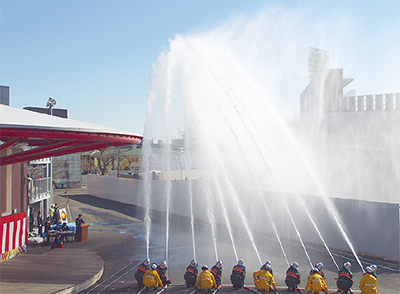 川崎消防署、川崎消防団による「川崎地区消防出初式」が9日、川崎競輪場を会場に実施された。