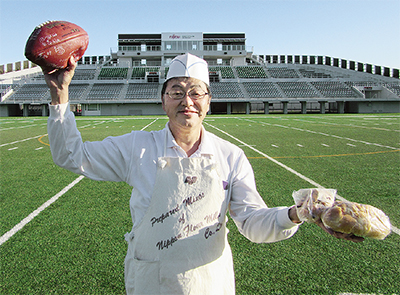 パンでアメリカンフットボールのまち・川崎を盛り上げよう――。東田町の老舗パン店「ベーカリーフクナガ」の小澤清代志さんは富士通スタジアム川崎で行われたアメフットゲームでアメフットパンを販売した。