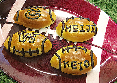 カレッジアメフトパンは「一目で大学をイメージしやすいデザインを意識した」と小澤さん。絵心のあるスタッフの協力で完成することができたという。売れ行きについては「母校愛に溢れる学校関係者が次々と購入し、あっという間に完売した」と小澤さんは笑顔を見せる。