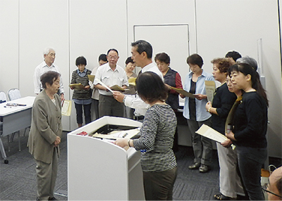 川崎商工会議所(山田長満会長)と珠算協会(小泉幸洋会長)が連携して行っているシニア向け珠算教室の前期修了式が、9月24日に川崎駅前のフロンティアビルで行われた。