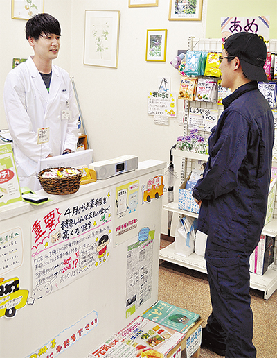 訓練では、塩酸を購入しにきた不審者に対し、同薬局のスタッフが使用目的を聞くことや身分証の提示を求めるなど、毅然とした態度で臨んだ。そして、適正な手続きを取らない不審者には販売しないことを確認していた。