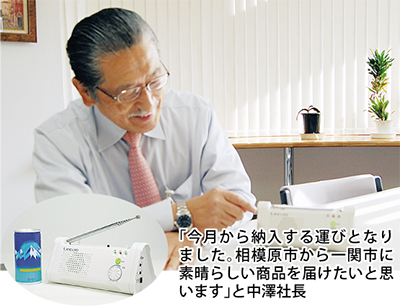 このラジオは春から被災地の岩手県一関市で使用される予定。当初同市では今年末をめざし、コミュニティFMの開局と、「緊急告知ラジオ」の導入を検討していたが、震災の影響を受け、事業を前倒し。4月に一関市全戸、約56,000戸へ同社のラジオ端末が無償配布される。「災害時や停電時にとても頼りになる。住民にしっかり情報を伝えられるラジオになれば」と中澤社長。今後は相模原市にも導入を働きかけるそう。