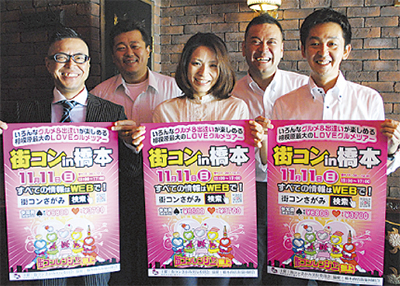 イベント会社が企画、運営することが多い街コン。今回は、橋本近隣在勤・在住の会社経営者や主婦ら有志が集まって実行委員会を結成。橋本商店街協同組合が協催し、準備、運営を行っている。相模原市の後援も決まった。