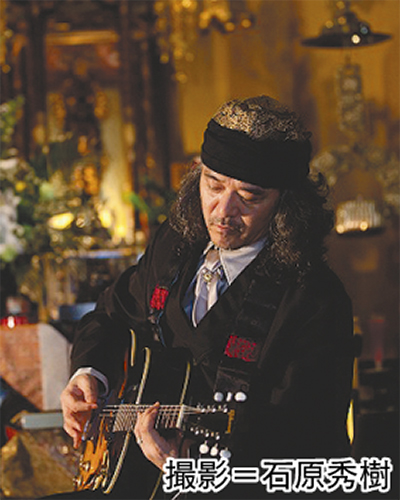 眞信山蓮向寺(南区当麻)の住職でシンガー・ソングライターの北條不可思(ほうじょうふかし)さん=写真による2年ぶりのコンサート開催が決定した。来年10月12日(土)、グリーンホール相模大野で”縁絆(えんばん)コンサートエンドレスツアー2013”が行われる。