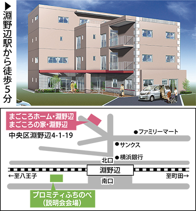 住宅介護サービスを展開する(株)まごころ介護サービスが6月、淵野辺駅北口そばに認知対応型グループホーム「まごころホーム・淵野辺」と、小規模多機能「まごころの家・淵野辺」をオープン予定。入居説明会をプロミティふちのべ、2階D会議室で開催している。