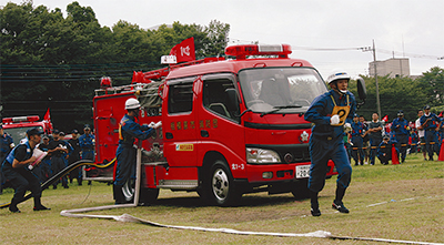消防団員は、消防署員とともに、地域の消防・防災リーダーとして日頃から火災予防や地域の防災活動、災害時の消火や救助活動にあたっている。今大会は、普段から鍛えているそうした災害時の消火活動を、迅速かつ的確に、安全に行う技術を競い合うことを目的に開催。これまで約2年に一度開催されてきたが、昨年消防団が1団6方面隊体制に再編されたため、新体制となってからは今回が初めての開催となった。