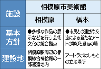 絵画や写真などの収蔵美術品を常時展示・公開し、地域活性化に繋げるための市美術館。市は現アートラボはしもとの再整備と、相模総合補給廠の一部返還地に美術館を新設することで、芸術文化の総合拠点づくりをめざそうと協議を重ねてきた。