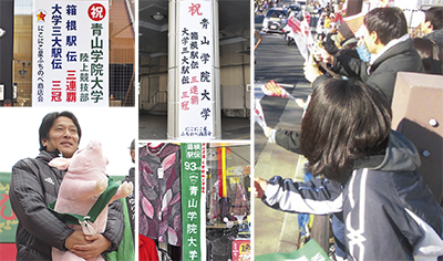 「第93回箱根駅伝(東京箱根間往復大学駅伝競走)」(主催/関東学生陸上競技連盟)で3連覇を果たした青山学院大学。区内淵野辺のキャンパスを練習拠点とする同大を応援しようと、地元では、商店会のメンバーをはじめとする市民も応援に駆け付けるなど、この偉業の達成をバックアップした。