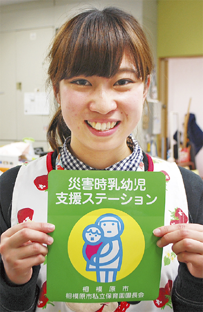 市内の私立保育園で構成される相模原市私立保育園園長会(内田紀子会長)はこのほど、同会で考案した「災害時乳幼児支援ステーション」の周知徹底を図るため、独自にステッカーを作成した。同会に加盟する私立保育園に加えて、公立保育園でも貼り出している。