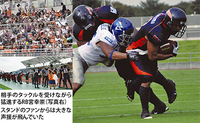 逆転に次ぐ、逆転でライズが勝利への執念を見せた。前半、相手のタッチダウンで追う展開となったが、QB木下雅斗の正確なパスから徐々に攻撃にリズムが生まれると、第3Q(クォーター)にWR出澤信のタッチダウンで9―7と逆転。一進一退の攻防を繰り返す中、相手のタッチダウンで再逆転を許した。しかし、第4QにQB木下が密集から抜け出しタッチダウン。またも逆転に成功。最後は相手の猛攻で詰め寄られる場面があったものの、3点差でしのぎきった。終了の笛が鳴ると、ライズファンが陣取るスタンドからは大きな歓声が上がった。