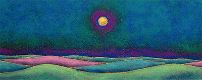 デパートでの個展は今回が初めてという楯さん。「美術に興味のある方はもちろん、それ以外の多くの方にも見ていただける非常に良い機会なのでは」。どの作品にも「絵本の中の作品を想起」させるような”物語感”があふれている。なお、来月1日から7日まで、ニューヨークでの展覧会と平行して、東京・青梅市立美術館でのチャリティ展にも出品している。さらに、「地元の人にも、もちろん見てもらいたい」と、8月下旬には、米軍住宅南口前の「カフェギャラリー・シード」(南区南台)でも、個展開催が決定した(=写真は作品『思考の海』)。