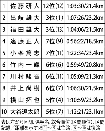 ※括弧内の学年の後は、箱根駅伝の出場回数