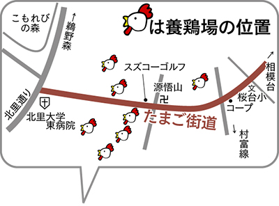南区麻溝台で養鶏業を営む地元の農家(企業)が手を携え、組織する団体「麻溝畜産会」(角田(かくだ)隆洋会長)が”畜産エリア”の積極的なPRをはじめた。第一段階の取り組みとして、地域の主要道路である市道(北里大学東病院から南台・相模台方面への道)を「たまご街道」と名付け、今月中旬から沿道にこの愛称を記したのぼりを掲げている。
