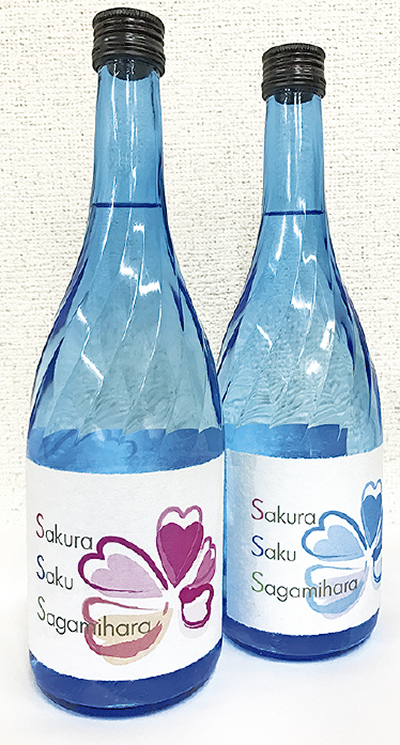 昨年12月から商品開発をスタート。製造は震災で経済的に被害を受けた熊本県の(株)堤酒造に依頼した。そしてこのほど、2種類の「サクラサク サガミハラ」が完成。裏ラベルには市シティセールス・親善交流課の協力も得て、市マスコットキャラクター「さがみん」も登場している。さくら色ラベル=写真左=が芋焼酎、あお色ラベル=写真右=が麦焼酎、どちらも720ミリリットルで1650円(税抜)。同店のホームページから購入が可能だ。「芋は優雅な桜を彷彿とさせる香り、麦は軽やかな飲み口が特徴です。桜の問題を支援することで、郷土に対する愛情も持ってもらえたら」と八木専務。問合せは同店【電話】042・756・5230へ。
