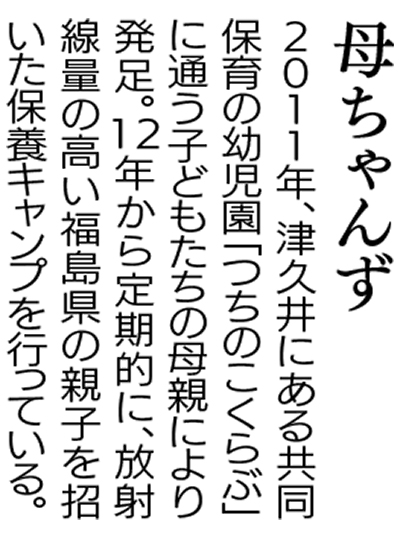 「母ちゃんず」(竹内亜紀代表)は、福島第一原発事故の影響から、放射線量の高い屋外で安心して遊ぶことができない福島県在住の親子を相模原市内などの公共宿泊施設に無償で招き、自然を体験して心身のリフレッシュをしてもらおうと、保養キャンプを開催している市民団体だ。2012年3月の初開催以降、年に2、3回のペースで実施。昨年夏までで13回を数える。