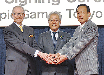都内のホテルで開催された覚書締結式には、日本オリンピック委員会(JOC)の竹田恆和会長、ブラジルオリンピック委員会のカルロス・ヌズマン会長のほか、事前キャンプ地となる相模原市、埼玉県新座市、東京都大田区などの自治体から首長が出席した。