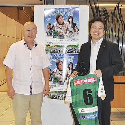 映画は市内在住の作家・井上尚登さんの同名小説が原作。相模原のJ3サッカーチームに所属するホペイロ(用具係)を描いた内容は、ミステリアスながらもユーモア溢れるストーリー。今年2月から3月にかけ市内各所で撮影された。6月には都内で初号試写を実施。配給会社が決まったことから制作サイドは上映時期の検討を加速させ、MOVIX橋本での先行ロードショーで交渉がまとまったことにより、市内試写会での発表にこぎつけた。新春公開の第2弾として角川シネマ新宿での上映も決定。その後、全国で順次公開される見通し。