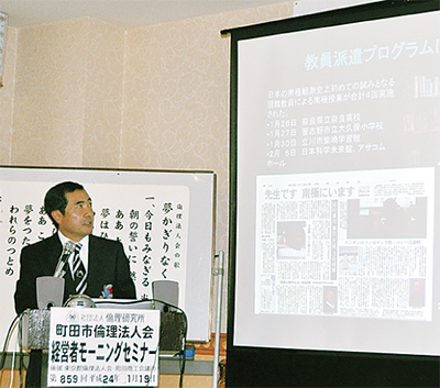 国立極地研究所副所長で南極越冬隊長の本吉洋一氏のよる講話「地球のタイムカプセル―南極」が先月、ホテルラポール千寿閣で行われた。