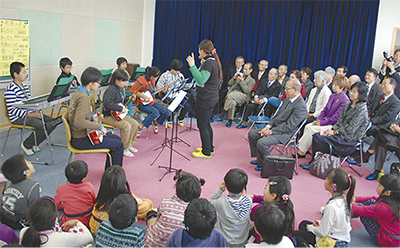佐藤会長は「ずっと児童たちに早く会って話がしたかった。歳をとっても音楽は楽しいもの。みんなから元気をもらうことができました」と話していた。