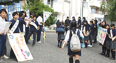 9月14日から18日にかけては七国山小・山崎中に加え、都立山崎高校も参加。近隣3校が初めて合同でキャンペーンを実施した。小1から高3までの児童・生徒が一体となってあいさつ運動を行うのは都内でも珍しい取り組み。