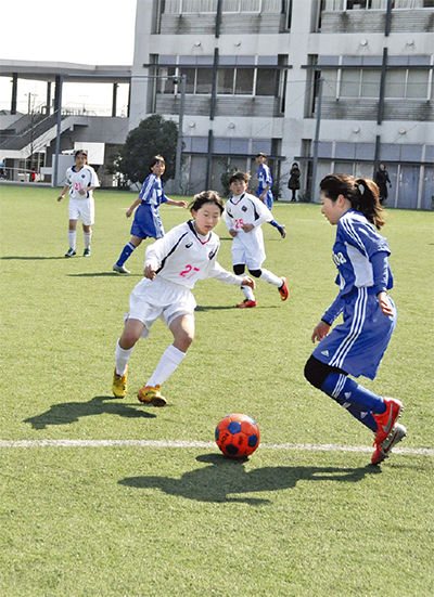 きれいに整備された人工芝のピッチ上で、ボールを追いかける女子の元気いっぱいの声が響き渡った。