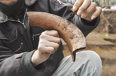 遺構の近くに年代の異なる幅1・5mほどの生活道路の跡も発掘された。道路跡は他と区別しづらいため残らないことが多いという。中西さんは「貴重なものが見られた」と喜んでいた。
