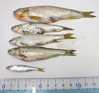 体長約10cm未満のオイカワやモツゴなど、少なくとも500匹以上が現地で確認され、最終的には2500匹の死んだ魚が回収された。