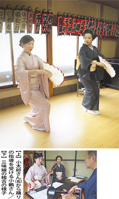 現在は週に4、5回、小太郎さんのもとで指導を受け、三味線などのお稽古事にも精を出す。一昨年に置屋を開き、これまで何人かの見習いを見てきた小太郎さんは「小鶴ちゃんはお稽古事が好き。お歌が上手なのも優れた点」と評価する。