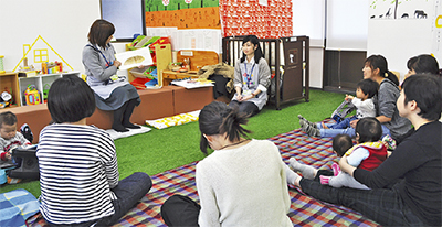 「子どもには本好きになってもらいたい」との思いから、両団体が連携して企画した今回のイベント。同図書館のスタッフが絵本の読み聞かせや、ふれあい遊びなどを披露し、6組の親子がくつろぎながら、親子でふれあいを楽しんだ。