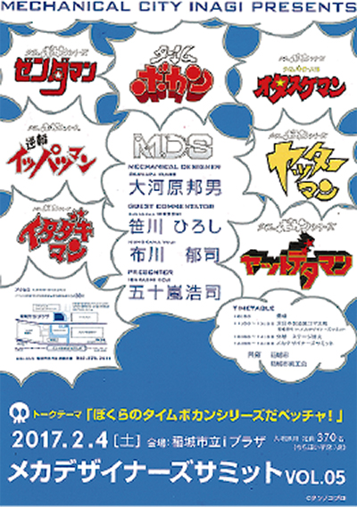 作品ごとに大きなムーブメントを巻き起こす伝説のアニメ『タイムボカン』。その制作陣が作品を熱く語る「メカデザイナーズサミットVOL.5」が稲城市立iプラザ(京王相模原線「若葉台」駅徒歩2分)で2月4日(土)午前10時半から午後4時まで開催される。入場無料で定員370人。