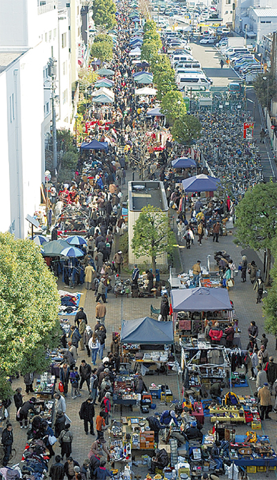 今年で14年目に入った古民具骨董市は、小田急江ノ島線・相鉄線「大和駅」の東西に伸びる遊歩道(プロムナード)に、和洋骨董やアンティーク、古着などが並ぶ露店形式の催し。昨年末の開催では、東側プロムナードの出店エリアを国道467号線(藤沢街道)まで伸ばし、過去最多の286店が出店。名実ともに「日本一」を標榜するにふさわしい骨董市となった。