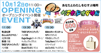 オープンを記念し、明日12日(土)、午前11時から、イベントが開催される。地元のダンスチームによるパフォーマンスなどが会場を盛り上げる。「銀河連邦ヒーロー サガミリオン」も来場予定。さらに、先着500名にオリジナルバッグのプレゼント(歩行者デッキにて午前10時から引換券を配布)が用意されている。