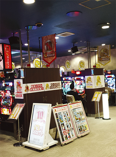何と言っても機種と設定の多さが魅力。パチンコは0・5円から1円、4円まで取り揃えており、「ゲームセンター感覚で、長く楽しく遊べる」と年齢性別を問わず喜ばれている。この4月には「CR海物語沖縄桜バージョン」「CRルパン三世」を導入。その他、話題の機種も続々と登場している。