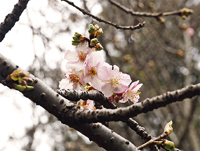 この桜は静岡県河津町に多く自生するもので、1月下旬から2月にかけて開花する「早咲きの桜」として知られている。