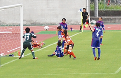 試合は前半15分、FW石渕優紀選手からのパスをMF山崎友希選手が決め先制。さらに前半19分、FW堀良江選手がドリブルから強烈なシュートを決めた。その後、相手のロングシュートで1点を許し、2対1で前半を折り返した。