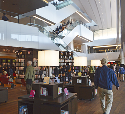 大和市の図書館などが入る文化複合施設「シリウス」が11月3日、大和駅前の複合ビル・YAMATO文化森内(地下1階、地上6階)にオープンした。図書館は西側の1階から5階の全てにあり、全館で本が読めるようになっている。座席が約800という県内一の数を誇る新スタイルの図書館を探訪した。