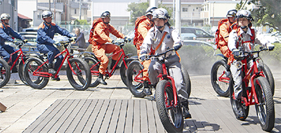 大和市は、全国初となる極太タイヤの自転車「ファットバイク」を活用した消防チーム「消防ファットバイク隊」(関口正美隊長)を発足させた。