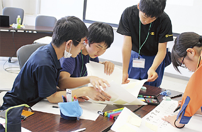 やまと災害ボランティアネットワークの市原信行代表を講師に、4月に次いで2度目の訓練となったこの日は中学生団員18人と高校生指導員1人が参加した。中学生たちはグループに分かれ、学校から帰宅し、自宅に1人でいた午後3時ごろ、市内で震度6強の地震が起きた想定の下、避難所運営の手伝いを任された際、トイレや高齢者など災害弱者への対応、支援物資の仕分けなど次から次へと起きる課題をどのように対処するかについて意見を出し合った。