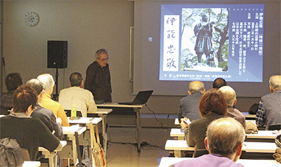 8回目となる今回は、初めてシリウスを会場に開催され、40人ほどが集まった。テーマの一つは来年が没後200年となる伊能忠敬。江戸時代に日本全国を測量した伊能忠敬の日記から、測量隊が厚木方面から東京方面に向かう際に鶴間村に泊まったことなどを日記や地図から読み解いた。