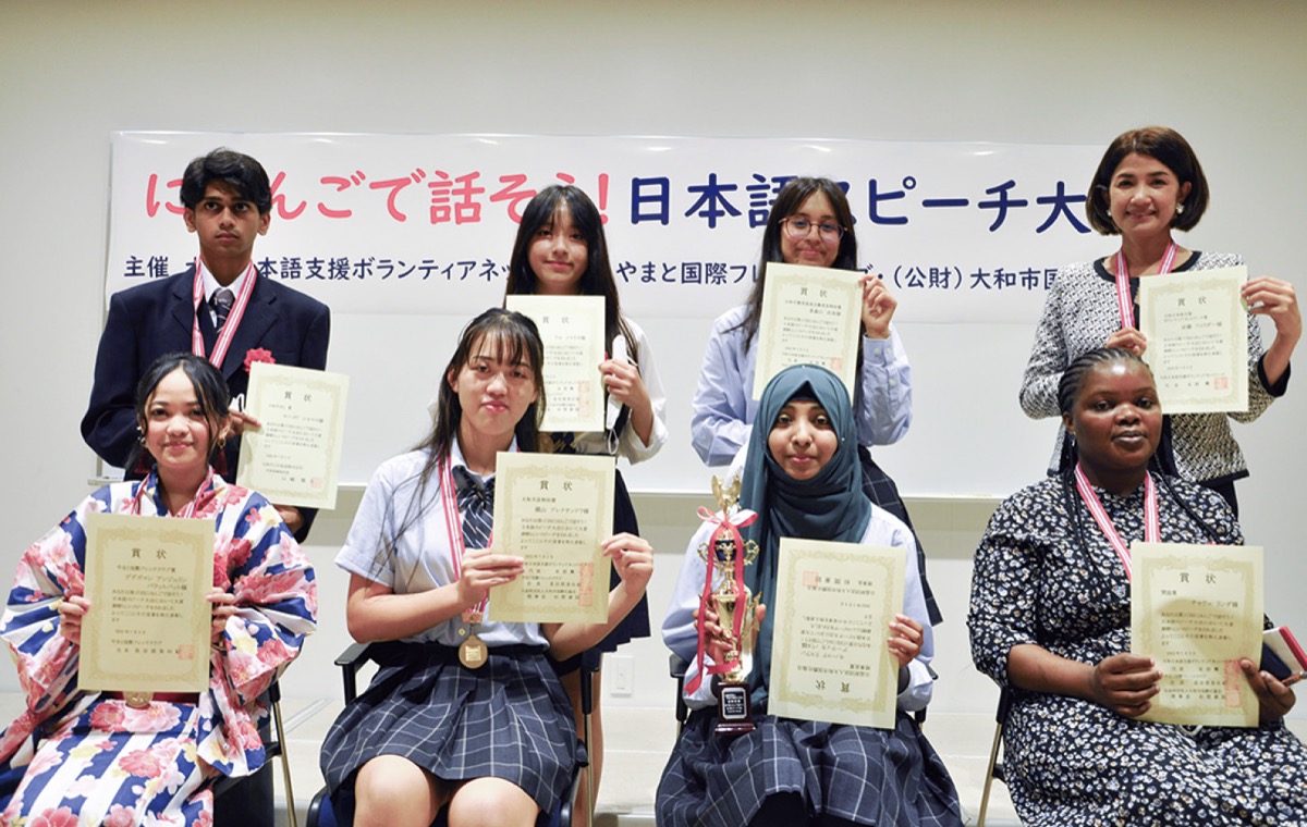 当日はフィリピン、スリランカ、カンボジア、タイ、タンザニア、ペルーの6カ国にルーツを持つ8人が参加した。座間総合高校1年でスリランカ出身のモハマド リスラン アーティカ バヌさんが大和市国際化協会理事長賞を受賞。「日本へ来てわかったこと」と題したスピーチでは「日本は多様性を受け入れる国で、未来を邪魔しているのは自身の誤解であると気がついた」と話した。