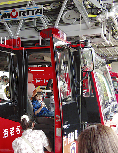 市消防署でこのほど未就学児とその保護者を対象にした、署内や消防車両の見学会が行われた。