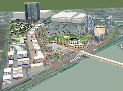 街区内はこのセンター用地のほか、教育文化施設や宿泊施設の立地が見込まれる高次機能複合用地、住宅用地、住・商複合系用地、タクシーの待機場などとして利用される多目的用地などから構成。計画人口を3千人と想定している。