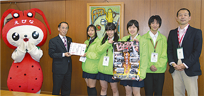 5月8日、三町代表と学生スタッフ4人が市役所を訪れ、集めた義援金を内野優市長に手渡した。義援金は、市の担当課から日本赤十字社を通し、東日本大震災の被災地へ寄付される。