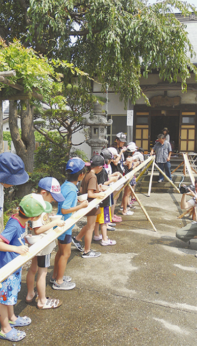 「寺子屋合宿」と銘打ち、中野の妙泉寺を舞台に8月19日(火)から22日(金)の3泊4日で行われ、流しそうめん、キャンドルファイヤーなど、子どもたちから昨年大人気だったイベントが今年も予定されている。