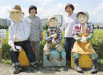 秋の風物詩として市内外でも知名度が高まっている「かかしまつり」の表彰式が9月12日、中新田コミセンで行われ、大人の部・最優秀賞には堀文子さんと野本みな子さんの作品「おにぎりざんまい」が選ばれた。